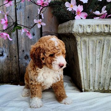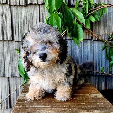 Love at first sight! Millie has the cutest little face, she was the smallest of her litter and as sweet as could be. She found her forever family in Buffalo NY! Snow dog!